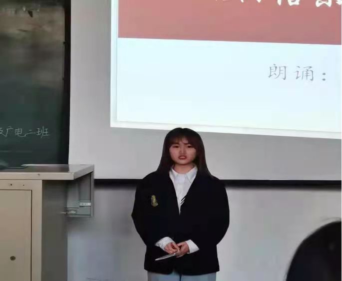 班会上,首先由杨若涵同学朗诵《相信未来》,表达了青年人要在逆境中自我鼓励,努力提升自己,在时代的浪潮中,相信未来,共同奋斗!