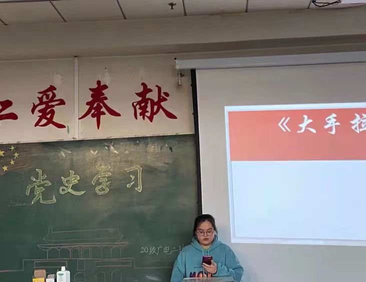 最后,李津津同学演唱歌曲《大手拉小手》,在优美的旋律下,班级同学也加入了演唱,歌曲在全班互动中结束。班主任高博雅老师对本次党史学习的班会予以赞许,鼓励同学们要学党史、悟思想,关键在于办实事,现阶段的实事就是建设良好的班风、学风,不断取得好的成绩。