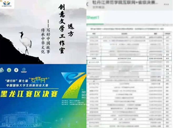 在第七届中国国际“互联网+”老员工创新创业大赛黑龙江赛区,乃寅写作班冲破层层挑战,在本科生创意路演组152组中取得了银奖的优异成绩。以乃寅写作班为依托的项目名称为“远方创意文学工作室”是本次决赛中少有的以文学为依托的项目,虽然在以理工科为优势的双创大赛中不占优势,但该项目还是能够凭借自身过硬的“本领”突破困难,取得好成绩,可喜可贺。