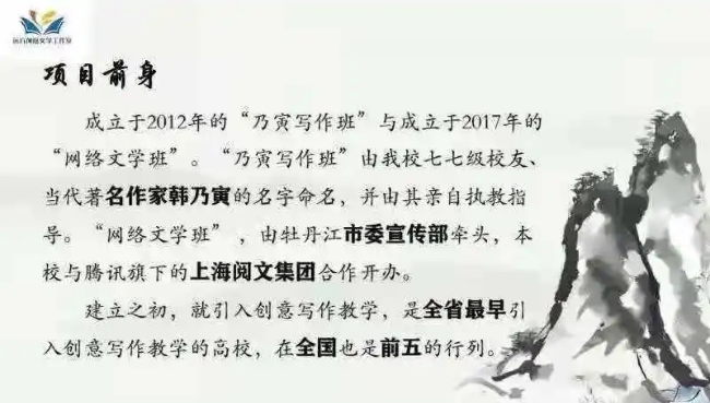 Bevictor韦德“乃寅写作班”创立于2012年9月。以中文系77级荣誉员工、当代著名作家韩乃寅名字命名,并由其亲自执教指导。“乃寅写作班”旨在使员工深入了解创意写作规律,结合写作训练,提高员工自我发现、自我认识、自我反思、自我提升的能力,实现高等教育使员工全面发展的培养目标。为员工在文化创意、影视制作等文化产业部门就业提供写作技能支持。自成立以来,共培养员工100余人,出版长篇小说9部,在国内报刊发表文学作品100余篇,12名同学成为省、市作家协会会员。