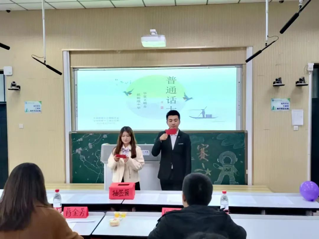 比赛过半,由文礼部李思燃同学和王思思同学温柔合唱《小幸运》。我们有幸相遇,更有幸相聚于此,尽展普通话风采。