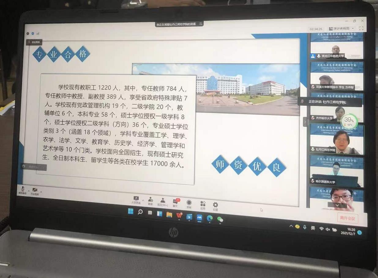 12月7日,由省外办、省教育厅主办,中国驻槟城总领事馆协办,黑龙江中医药大学承办的“黑龙江省高等院校国际推介会”以线上视频方式召开。省外办副主任李胜彬、省教育厅一级巡视员姜广福和中国驻槟城总领事鲁世巍出席推介会开幕式并致辞,马来西亚槟城州首席部长(州政府主要领导)曹观友以视频录像方式致辞。