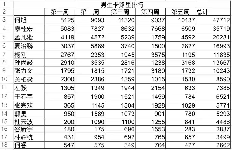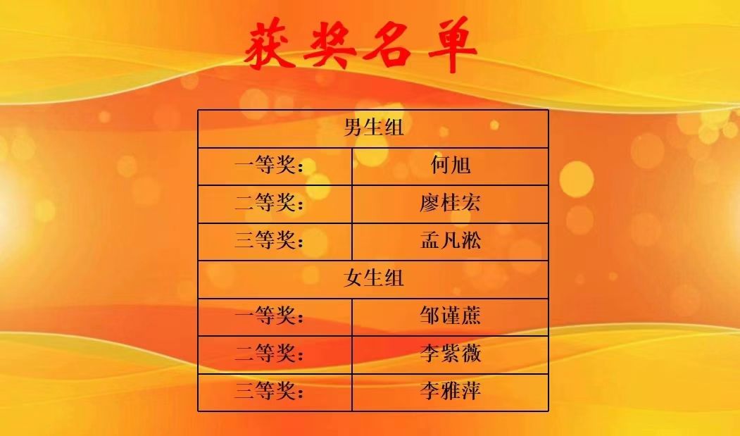 接下来,揭晓本次卡路里比赛的获奖名单,恭喜以下同学分别获得比赛的一等奖、二等奖与三等奖!