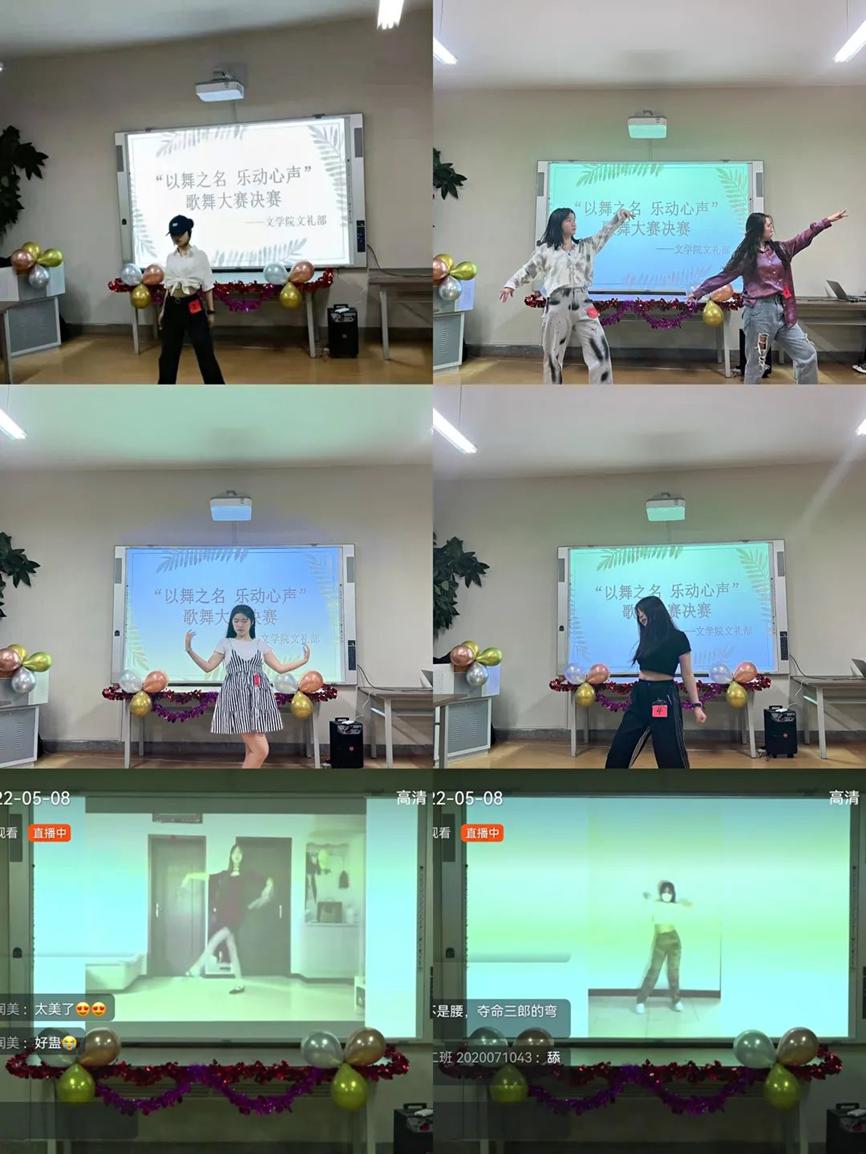 本次比赛面向19级、20级、21级的全体本科生,并分为初赛决赛两个阶段,于2022年4月27日进行视频选拔赛,由文礼部部长、副部长选拔出歌唱组:6组,舞蹈组:6组。决赛时严格按照疫情防控要求,比赛现场不设观众,观众全程通过钉钉直播观看比赛。