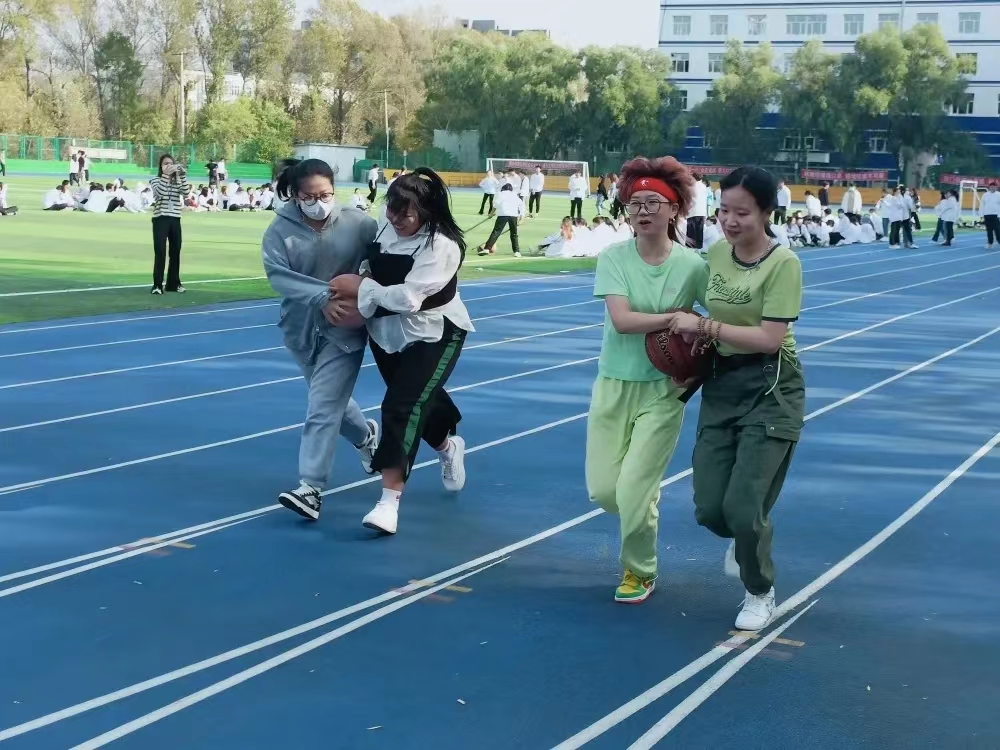 抱双球接力赛。同学们齐心协力,合作默契,肩挨肩、手拉手,口中喊着整齐的号子,脸上带着爽朗的欢笑,前路并不遥远,他们一起跑出了风格,接出了友谊。