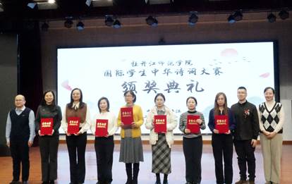 音乐潺潺,朗诵缓缓,来自世界各地的同学因诗词相聚于寒冬,由诗情感受着温暖。上午激烈的比赛落下帷幕,下午精彩的演出徐徐展开。服装走秀《汉韵华章》、傣族舞蹈《雀之灵》、歌曲《青花瓷》、民乐合奏《花好月圆》、古筝演奏《丰收锣鼓》等节目精彩纷呈。中华文化兼容并蓄,同学们通过各式各样的方式展现着中华民族文化的恒久魅力与焕发青春的时代风采,师院青年们共同谱写、共同奏出盛世华音。