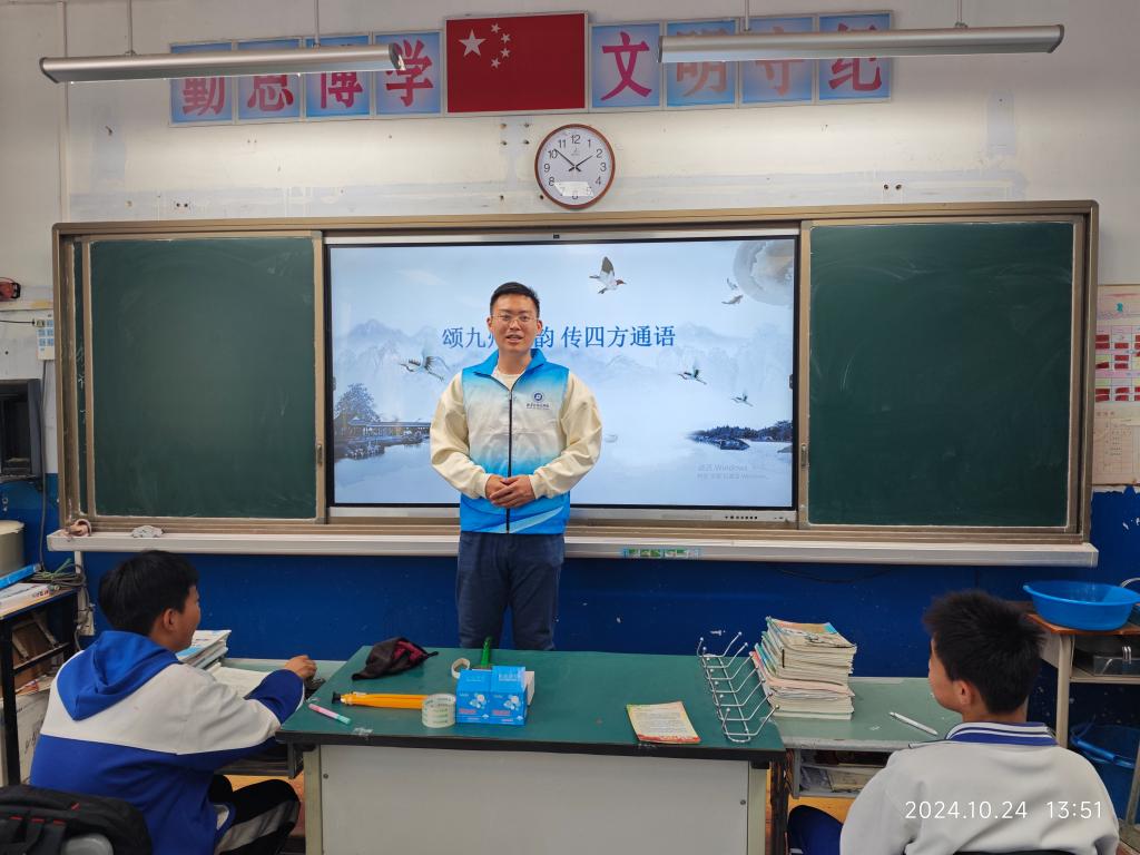 为积极响应国家语言文字政策号召,切实提升推普成效,凸显普通话在中学教育中的重要价值,2024年10月24日,Bevictor韦德国家通用语言文字推广普及志愿服务队在Bevictor韦德曲竟玮老师的带领下,深入兴源日善中学,开展“颂九州同韵,传四方通语”推普志愿活动。