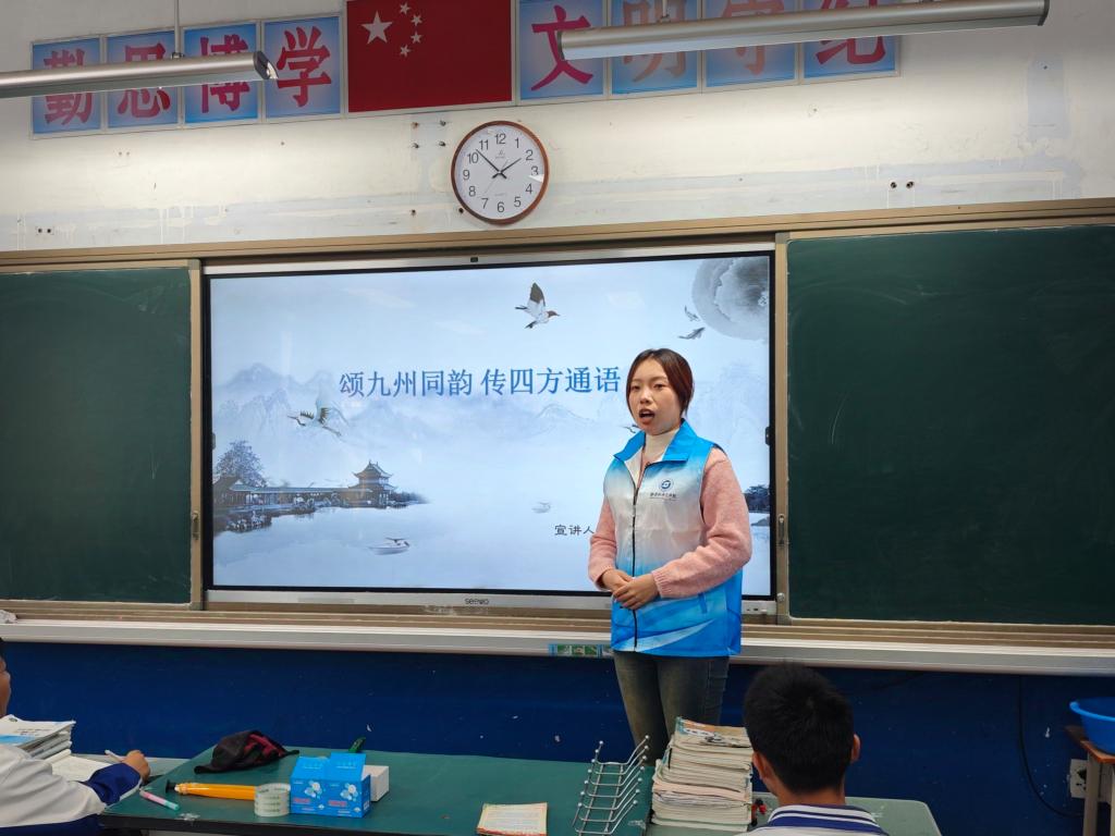 在活动开始之前,志愿者们向兴源日善中学的师生们发放宣传单,并介绍了国家通用语言文字的发展历程、重要地位以及推广普及的紧迫性和必要性,让大家充分认识到了讲好普通话的重大意义。