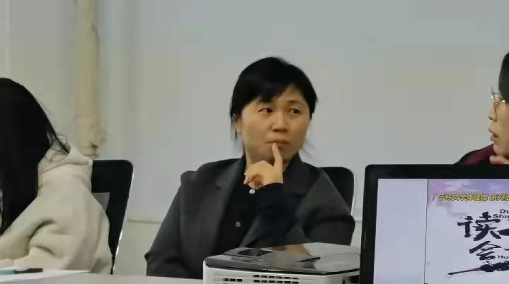 本次读书会三名研究生同学参与到了讨论,讲述了她们对余华作品中“冷静”的见解。韦硕说道:“《活着》很有力量。环境描写中带着冷静又蕴含着悲伤,很独特,笔触很有力量。”谈到《第七天》时,闫晨说:“这篇讲述了一个离奇的故事,讲述了现实的真实和荒诞。尤其是余华描述死后的世界充满了温情。显现了一种冷的黑色。”杨承贤结合《现实一种》谈道:“文中的场面很血腥,冷静的描写给人强烈的视觉冲击,给人一种血里流着冰碴子的感觉。”