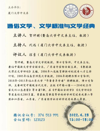主讲人:贺仲明(暨南大学中文系主任、教授)