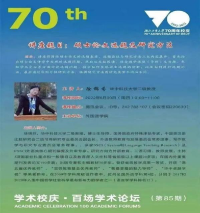 主讲人:徐锦芬(华中科技大学二级教授)