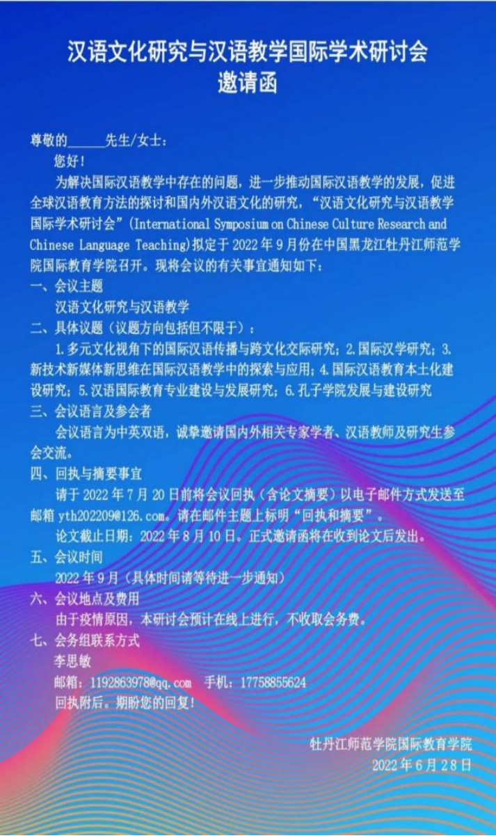 会议邀请函|汉语文化研究与汉语教学国际学术研讨会