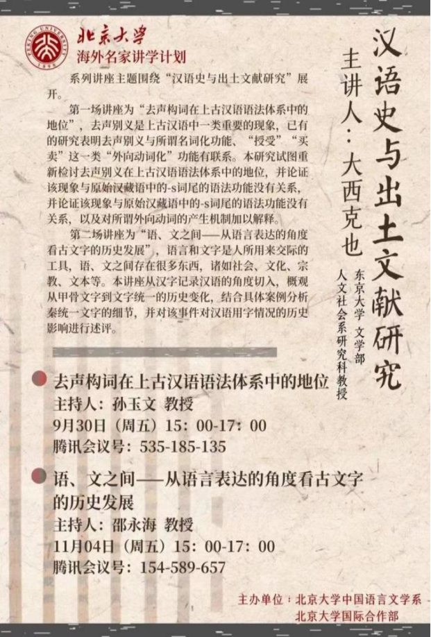 主讲:大西克也 (东京大学文学部、人文社会系研究科 教授)