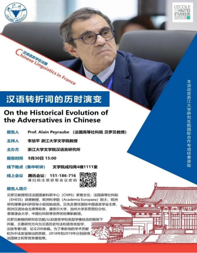 主讲:Prof. Alain Peyraube (法国高等社科院 贝罗贝教授)