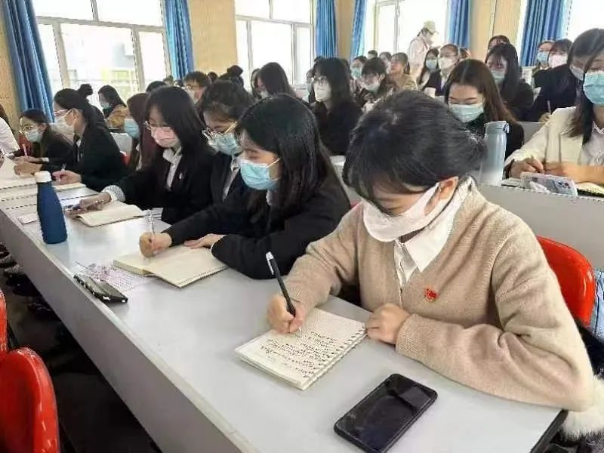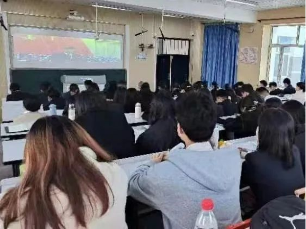 教室里洋溢着喜庆的气氛,师生们穿着正式,佩戴党徽,一个个精神抖擞,聚精会神地观看,还有不少同学拿出笔记本,认真地做起了笔记。习近平总书记所作的大会报告凝聚人心、催人奋进。大家一致认为,党的二十大再一次明确宣示了党在新征程上举什么旗、走什么路、以什么样的精神状态、朝着什么样的目标继续前进,对团结和激励全国各族人民为夺取中国特色社会主义新胜利而奋斗具有十分重大的意义。