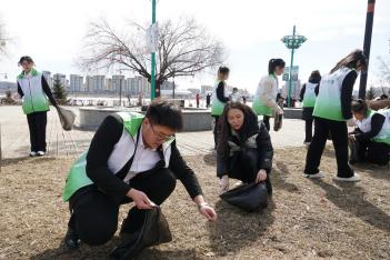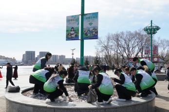 怀着沉重的心情,我们来到了八女投江烈士群雕广场,弘扬中国共产党人精神谱系,不只停留在话语之上,更应该付诸以行动。师生们来到八女投江烈士群雕广场拿起钉耙扫落叶,拿着塑料袋捡拾垃圾,发扬服务人民、助人为乐的雷锋精神。