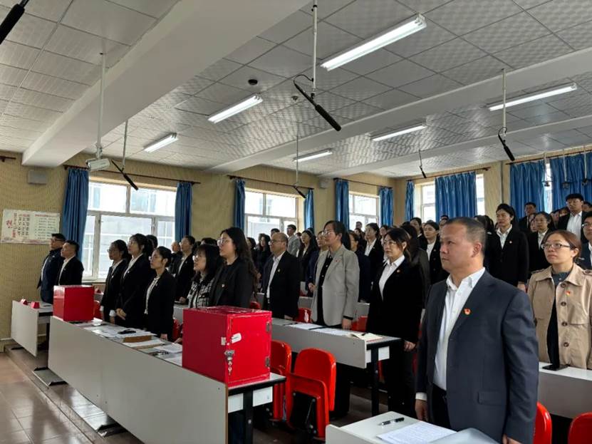 大会在庄严的国歌声中拉开序幕。迟艳平同志汇报大会筹备工作情况,綦中明同志对党费收缴使用情况进行说明。