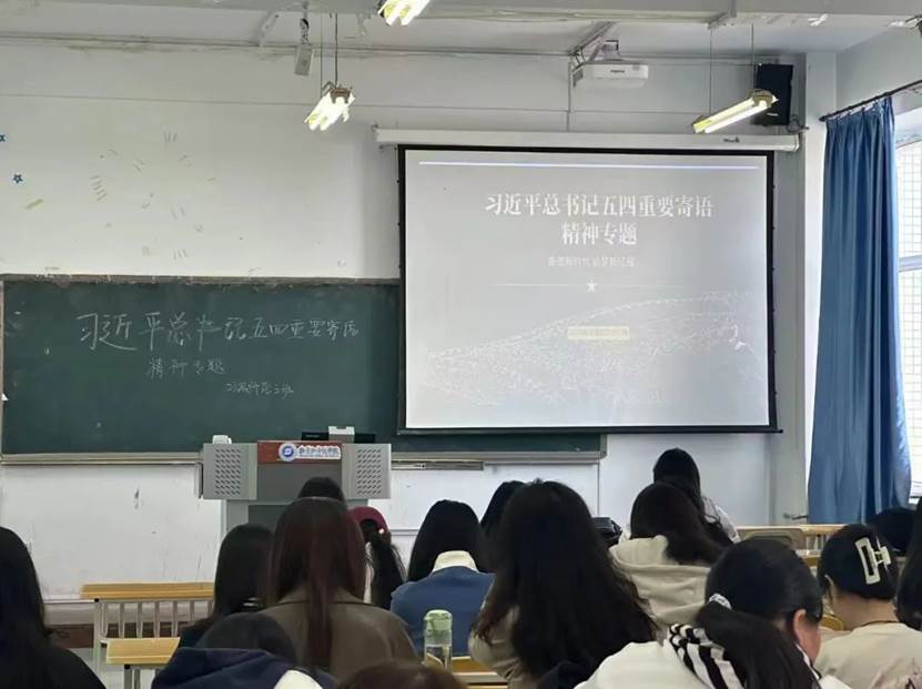 各班负责人以“五四精神”为主线,围绕五四青年节的起源、“五四精神”在新时代的意义、习近平总书记五四青年节寄语精神的深刻内涵以及新时代青年如何践行使命等四个方面带领同学们进行了系统学习。习近平总书记在寄语中强调,新时代新征程,全国青年听从党和人民的召唤,在科技创新、乡村振兴、卫国戍边等各领域各方面奋勇争先,展现出自信自强、刚健有为的精神风貌。党中央对广大青年寄予厚望,青年要继承和发扬“五四精神”,才能书写中国式现代化的新篇章。