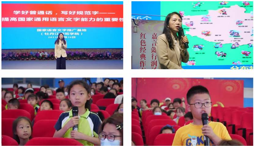 活动中,金莉娜副教授以“说好普通话,写好规范汉字——谈学习国家通用语言文字的重要性”为主题,为海林市朝鲜族实验小学师生开展专题讲座。金老师回顾了中国共产党领导语言文字事业的百年历程,对国家大力推广普通话的重要内涵和时代意义作了深入解读,并深入浅出地讲解了我国方言区分布情况、语言文字的演变过程、如何正确发音、克服方言、避免语法错误等问题。金老师以成语为例,生动有趣地讲解了语言现象背后蕴含的文化内涵,引发了员工们强烈的反响和积极地发言。与会师生达成一个共识,语言文字工作关系国家和民族的发展和长远利益,有利于增进各民族各地区之间的交流,维护国家的统一,增强中华民族的凝聚力。